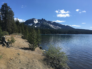 Then in northern OR we stayed three nights at Little Crater CG on Lake Paulina in Newberry Volcanic NM. After dragging the whole entourage up to 6,300' elevation we made it worth the haul. Each morning we burned propane to warm up the RV. But talk about snuggly cold nights and sleeping like a rock!